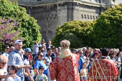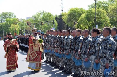 Негово Високопреосвещенство Варненският и Великопреславски митрополит Йоан благослови бойните знамена и представителните части. Преди това в Катедралния храм "Свето Успение Богородично" беше отслужена тържествена света литургия за здраве.
