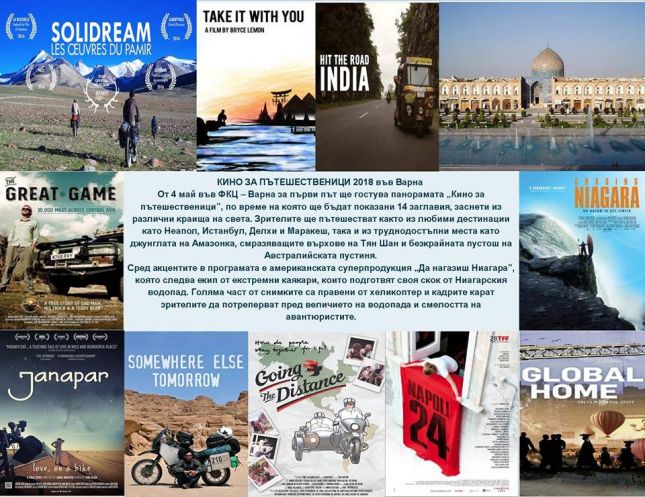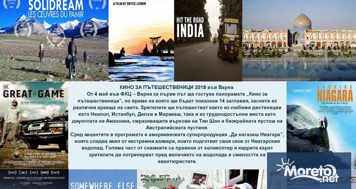 Във Фестивален и конгресен център – Варна се провежда панорамата „Кино за пътешественици”, научи Moreto.net. Премиерно, до 10 май, ще бъдат показани 14 заглавия, заснети из различни краища на света. Зрителите ще пътешестват както из любими дестинации като Неапол, Истанбул, Делхи и Маракеш, така и из труднодостъпни места като джунглата на Амазонка, смразяващите върхове на Тян Шан и безкрайната пустош на Австралийската пустиня.