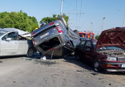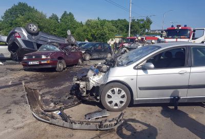 На мястото на инцидента е установено, че 43-годишна жена, управлявала лек автомобил "Джип Чероки", по време на движение, при маневра за завой надясно, губи контрол над автомобила и блъска лек автомобил "Ситроен", след което се преобръща и блъска още 6 автомобила.