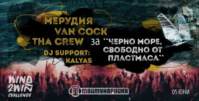 На 5 юни групите Мерудия, Van Cock, и ThaCrew ще изнесат благотворителен концерт в клуб Маймунарника (Борисова Градина, София), с цел насочване на общественото внимание върху замърсяването на Черно море с пластмасови отпадъци и привличането на съмишленици в каузата за почистването му и намаляване на човешкия отпечатък върху морската вода, научи Moreto.net.