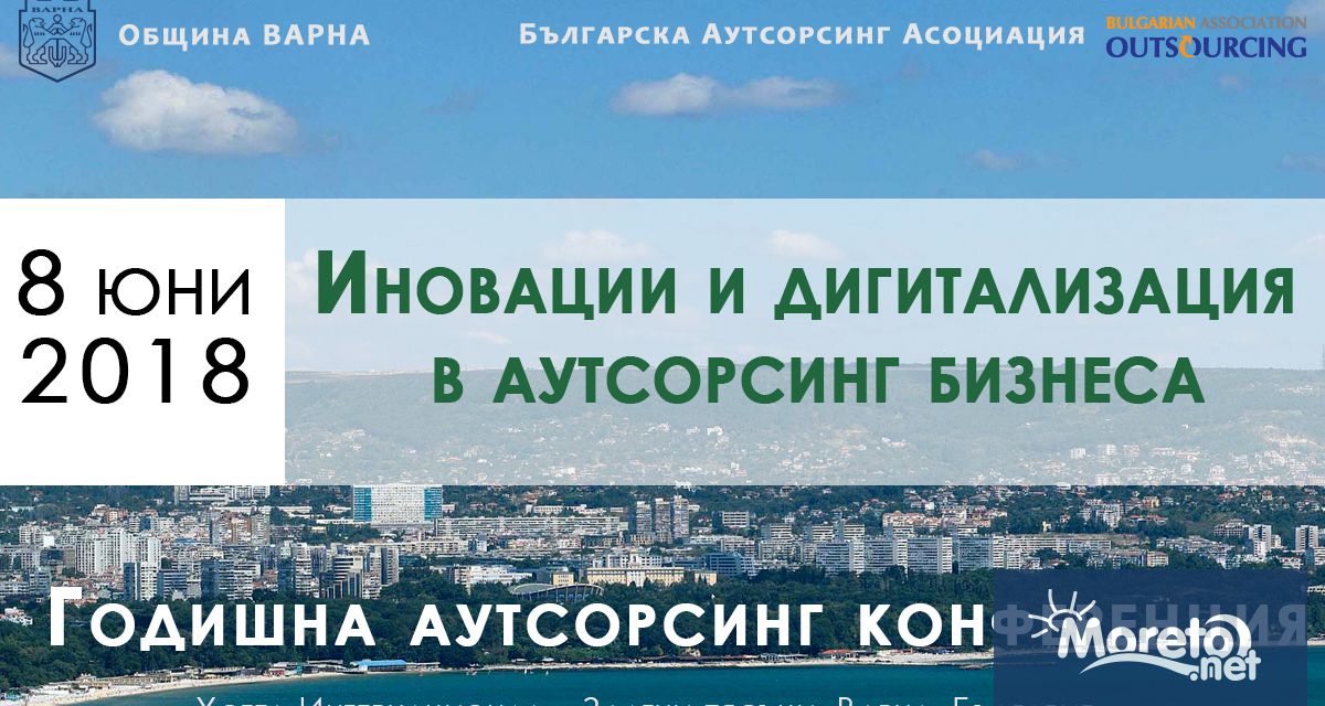 Община Варна ще е домакин и съорганизатор на Петата годишна конференция на Българската аутсорсинг асоциация (БАА) и на официалната церемония по връчване на годишните награди за иновации, технологии и аутсорсинг на БАА. Събитието ще се проведе на 8-ми юни, в хотел "Интернационал" в курорта Златни пясъци. Конференцията ще събере елита на аутсорсинг индустрията - очакват се над 150 души - водещи топ мениджъри и собственици на компании от страната и чужбина, които ще обсъждат в дълбочина предизвикателствата пред индустрията, обменят опит и визии, чертаят стратегии за развитие. Сред работните теми ще бъдат: Какво е въздействието на дигитализацията върху аутсорсинг индустрията? Какви са възможните сценарии за развитие на BPO индустрията? Дали сме свидетели само на еволюционен етап или бизнесът скоро ще бъде радикално преформатиран, за да влезе в нова ера? Как да моделираме управлението на таланти, за да бъдем успешни? Какви биха били ефектите от дигиталната трансформация върху икономиката, образованието и чуждите инвестиции?