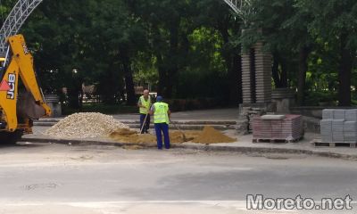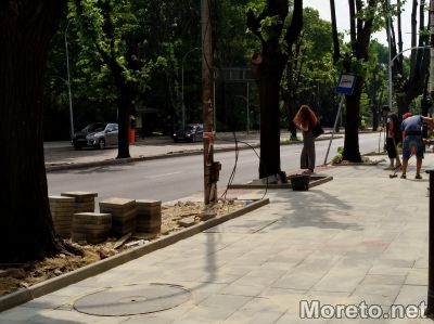 Ремонт на щетите по новите тротоари край бул. „Приморски“ извършва фирмата-изпълнител, видя репортер на Moreto.net.