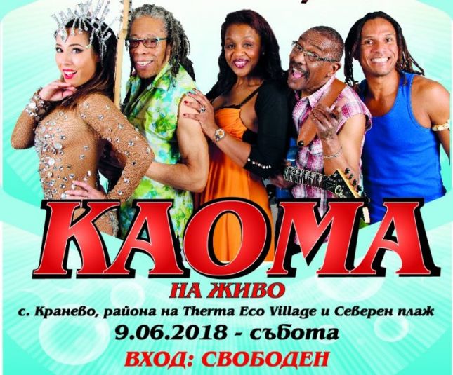 КАОМА пристигат у нас с членове от оригиналния състав на групата и нова певица – Една Бразил, която заменя трагично загиналата в инцидент в Бразилия вокалистка на групата. Една Бразил успява да вдъхнови КАОМА да се върнат на международната сцена, за да продължат да споделят страстта и магията на музиката си с публиката и ето ги тук – 9 юни 2018, Кранево!