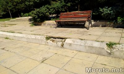 Градинката между Археологическия музей и Община Варна с натрошени плочки и пейки (снимки)