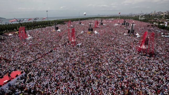 Кандидатът за президентския пост в Турция от основната опозиционна Народно-републиканска партия (НРП) Мухарем Индже излезе на трибуната пред митинг, на който в Истанбул се бяха стекли пет милиона души, съобщи в. „Джумхюриет“.