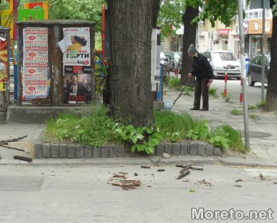 По улиците и тротоарите в морската столица също има паднали листа и клони.