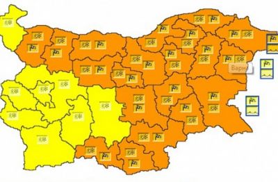 "Оранжев" код за 28 юни е обявен за цяла България с изключение на Видин и областта, където предупреждението е в жълт цвят, съобщиха от НИМХ при БАН.