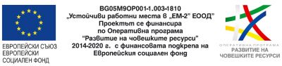 “ЕМ – 2” ЕООД финализира изпълнението на договор № BG05M9OP001-1.003-1810-С01 по процедура „Ново работно място 2015” на ОП „Развитие на човешките ресурси” 2014 – 2020 г. Проектът „Устойчиви работни места в „ЕМ-2” ЕООД” с продължителност 15 месеца приключва на 03.07.2018 год.