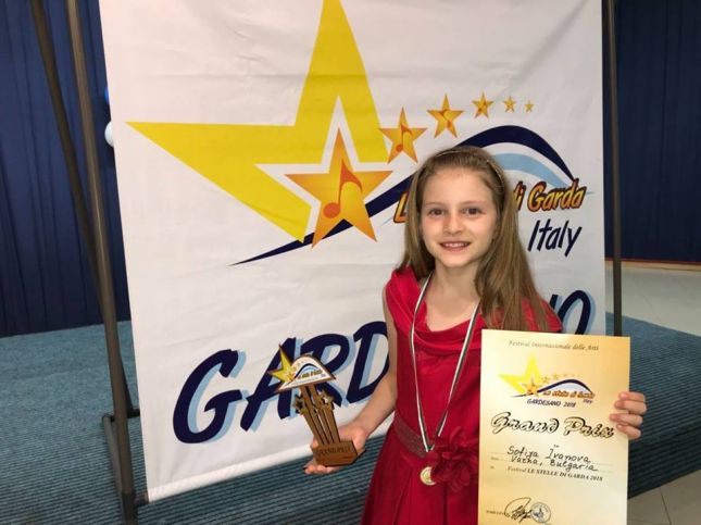 С Grand Prix и с първите места в 3 категории ит Италия се прибра едва 9-годишната София Иванова от Варна, научи Moreto.net. VIII-то издание на международния конкурс “Le Stelle di Garda" в Gardesano, Италия приключи повече от успешно за София. Единствената българка в конкурса се яви в 3 категории - флейта, поп и класическо пеене. Журито даде най-много гласове за нея и така тя заслужи единственото "Grand Prix" на фестивала.