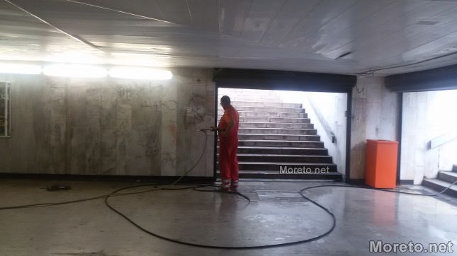 Водоноска и екипи на чистотата почистиха подлеза до Катедралата, видя репортер на Moreto.net.