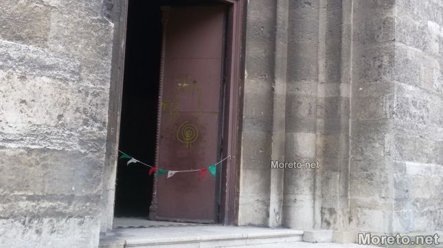 Задният вход на Катедралата във Варна е изписан с графити, видя репортер на Moreto.net.