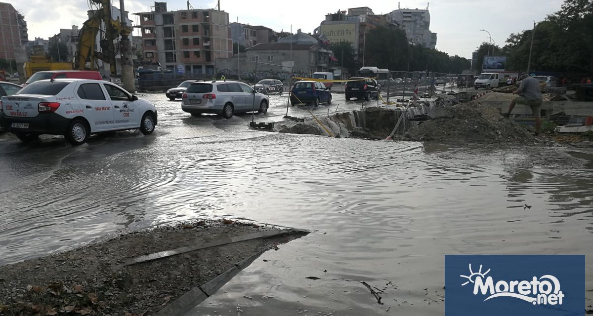 При изграждането на новия бул. „Левски“, спукан водопровод наводни бул. „Владислав Варненчик“ в района на Автогарата във Варна, научи Moreto.net.