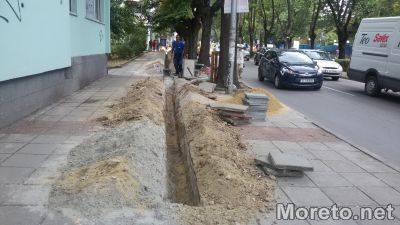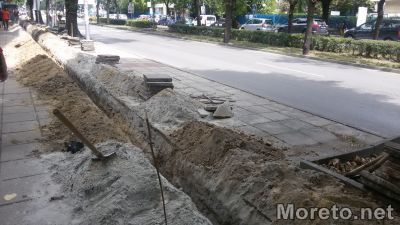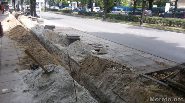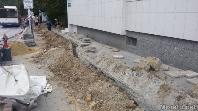 Дълбоки и дълги изкопи по бул. „Цар Освободител“ във Варна затрудняват пешеходците, видя репортер на Moreto.net.