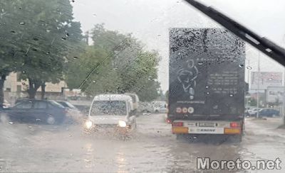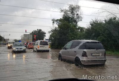В следствие на обилните валежи автомобилният трафик е затруднен във варненския район "Владиславово" и Западната промишлена зона, предаде репортер на Moret.net.