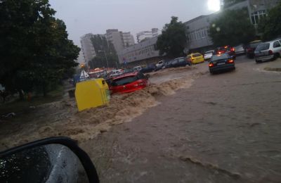 Движението на автомобили по пътните артерии в града е силно затруднено. Проблем създава и неработещият светофар на кръстовището до Двете кули. Кадри във Фейсбук показват, че районът на Зеленчуковата борса отново е под вода.