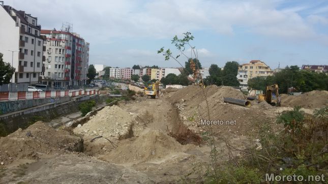 Ремонтните дейности по бул. „Левски“ във Варна продължават, въпреки дъждовете, които се изсипаха над града, видя репортер на Moreto.net.