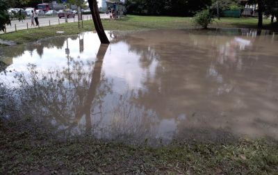 Тревната площ около бившия "Мол Варна" пък заприлича буквално на езеро.