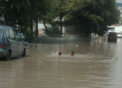 Другият сериозно наводнен район в морската столица бе този около Зеленчуковата борса. Насъбралата се вода по улицата, се превърна дори в плувен басейн за деца.