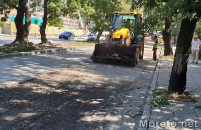 Ремонтни дейности се извършват по улица "Битоля", която се намира до Окръжна болница във Варна, видя репортер на Moreto.net.