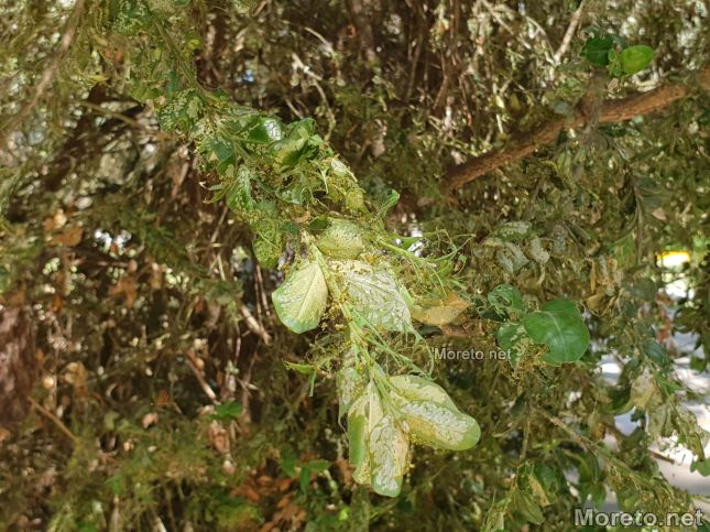 Десетки гъсеници буквално висят от дърветата и храстите в парка и предизвикват погнуса у преминаващите. Растенията са "облечени" в паяжини, а листата на някои дървета са повехнали и изядени.