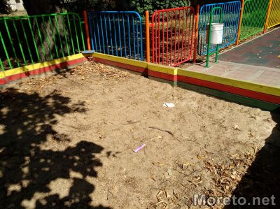 Снимките на пясъчник в детска площадка на ул. „Царевец“ показват картина, която съвсем не е изключение в останалите съоръжения за игра с подобни кътове, видя репортер на Мoreto.net.