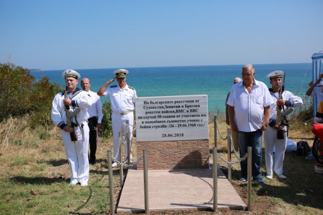 Командирът на ВМС се обърна с думи на уважение и признателност към всички артилеристи и ракетчици, участвали в пусковете и благодарение на които през годините е съхранен споменът за тези върхови достижения в историята на Българската армия, след което заедно с кметът на община Приморско и председателят на Областния съвет на СОСЗР в Бургас откриха паметната плоча.