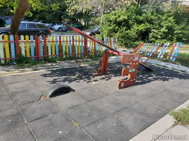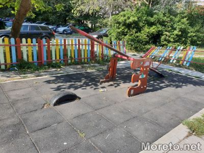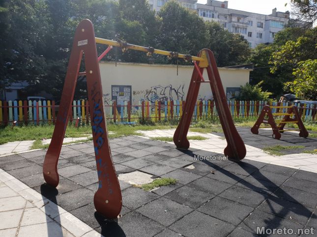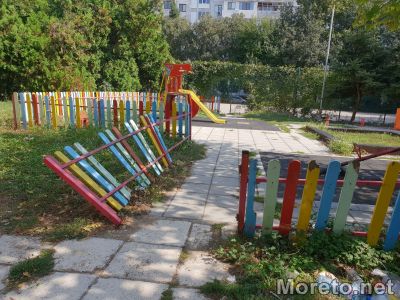 Вандали отново посегнаха на детска площадка във Варна. Този път мястото е ул. "Гладстон", непосредствено до бл. 2, видя репортер на Moreto.net.