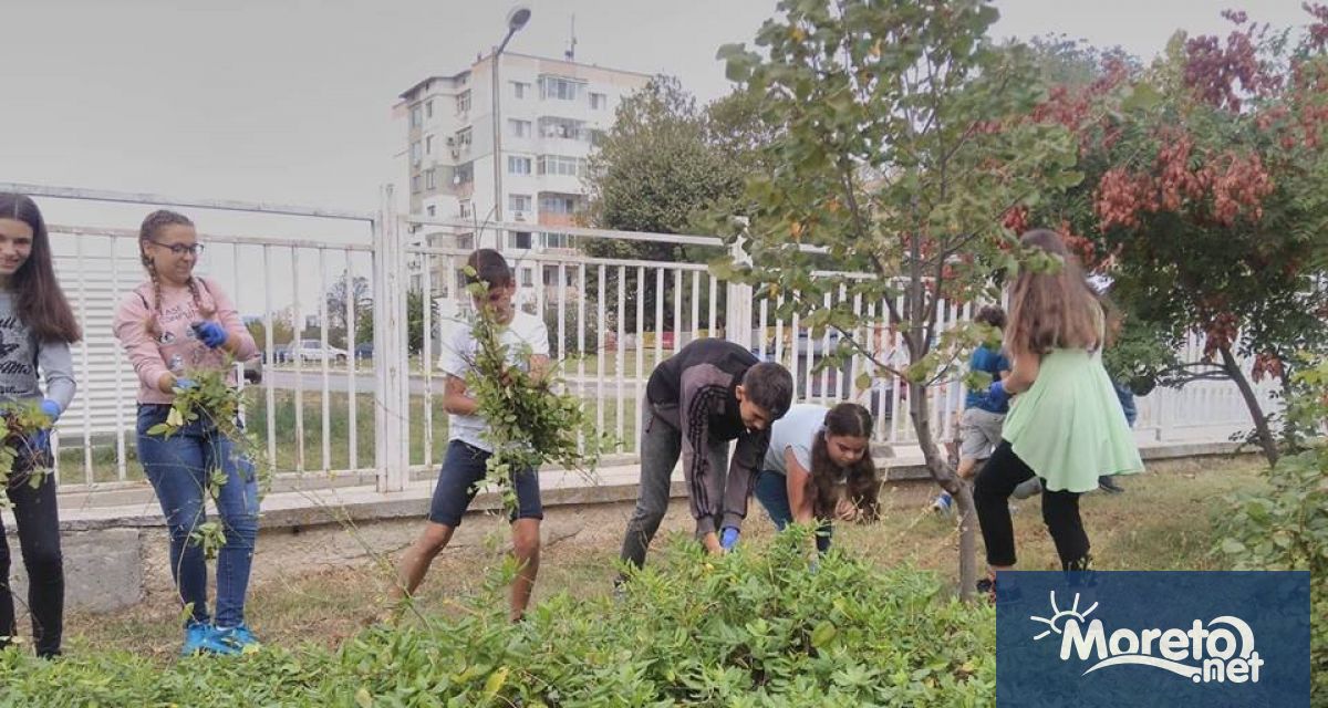 Ученици, учители и родители обновиха част от зелената площ на входа на ОУ "Стоян Михайловски" във Варна днес, научи Moreto.net.