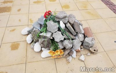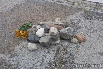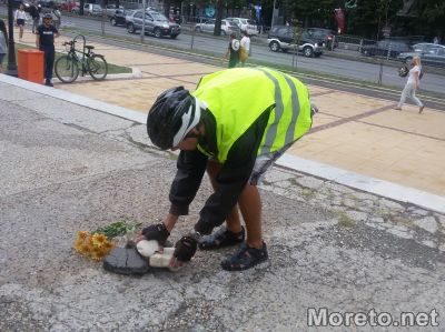 Варненци редят камъни и цветя пред сградата на община Варна в знак на протест заради блъснатия велосипедист Мартин Чикалов, видя репортер на Moreto.net.