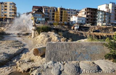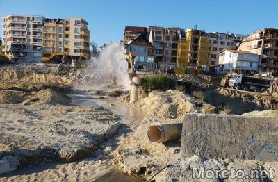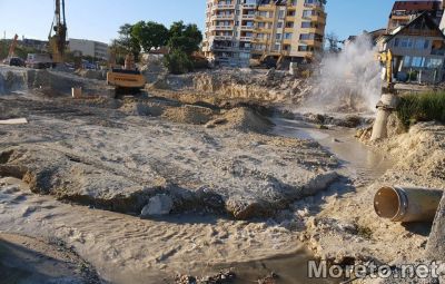 Водопровод се спука при градежа на бул. "Васил Левски", видя репортер на Moreto.net.