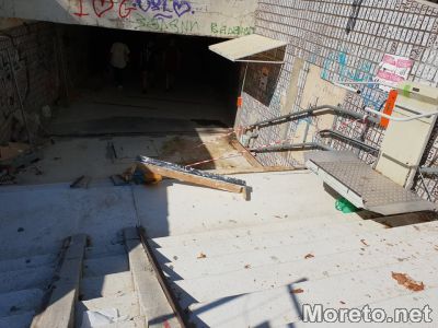 Подлезът на спирка "Явор" на бул. "Осми приморски полк", е в ремонт, видя репортер на Moreto.net.
