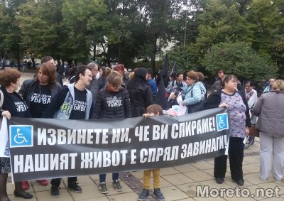 Протестът е срещу трите отхвърлени закона -за личната помощ, за социалните услуги и Законът за хората с увреждания от Националния съвет за интеграция на хората с увреждания, който е към Министерството на труда и социалната политика.
