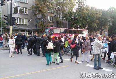 В знак на протест, родителите на деца с увреждания, блокираха част от бул. "Осми Приморски полк" пред община Варна, видя репортер на Moreto.net.