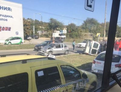 68-годишен водач на лек автомобил, излизайки от пресечка на бул. „Трети март“, не е спрял на знак „Стоп“ и е блъснат от друга кола, управлявана от 28-годишна жена, която се е движела в права посока, съобщават от ИА Фокус. След удара автомобилът се е преобърнал. Двамата водачи, които са били контактни и в съзнание, са откарани в болнично заведение за уточняване на здравословното им състояние.