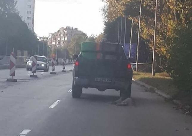 Снимки на кучето, което е вързано за пикап и влачено по варненски булевард, предизвикаха възмущение в социалните мрежи.
