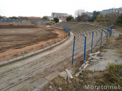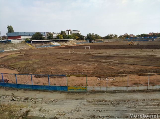 Подготвят терена на „Спартак“ за новите настилка и трибуни (снимки)