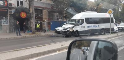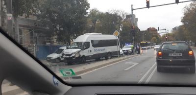 Пътен инцидент с полицейски микробус и "баничарка" затвори за час част от бул. "Мария Луиза", научи Moreto.net.