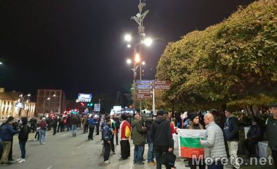 Общинският съветник Костадин Костадинов със свои привърженици и тази вечер изрази гражданската си позиция. Крачещите около него развяваха български знамена и подкрепяха активно протестиращите.