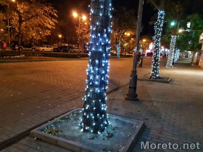 Част от коледната украса в морската столица грейна, видя репортер на Moreto.net.