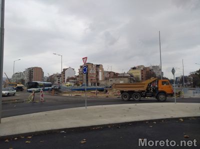 Кръговото кръстовище на бул. „Владислав Варненчик“ и новия бул. „Левски“ е почти готово, но все още не функционира с пълния си капацитет, видя репортер на Moreto.net.