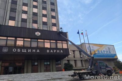 Коледната украса на сградата на община Варна вече е поставена, видя репортер на Moreto.net.