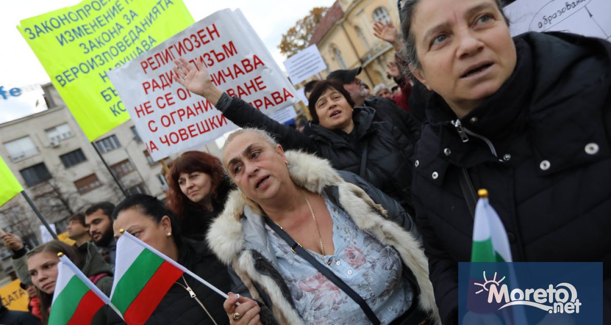 Протест и за свободата на вероизповеданията у нас. Недоволните се събраха пред Народното събрание и поискаха готвените в едноименния закон текстове да не бъдат приемани. С тях, според протестиращите, се дискриминират малките вероизповедания в страната.