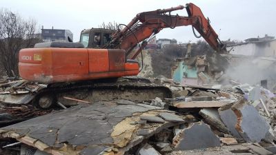 Не виждам съборени "къщи". Виждам купчини шперплат, балатуми и дъски. Не ми се чини да са отпадъци от двуетажните мангалски творения.