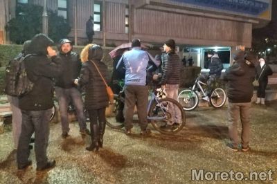 Въпреки дъжда около 20 души се събраха пред Община Варна, за да поемат на протестно шествие до Областна управа срещу 6-годишната присъда на убиеца на варненския балетист Мартин Чикалов, предаде репортер на Moreto.net.
