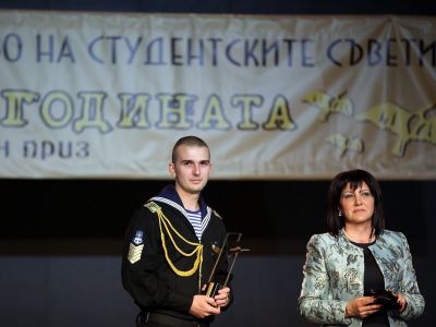 Курсант-мичман Петър Генов от ВВМУ "Н.Й.Вапцаров" във Варна, спечели приза "Студент на годината за 2018", научи Moreto.net.