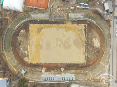 Ремонтът на стадион „Спартак“ продължава. Кадри на дрона „Морско око“ от последния ден на 2018-та година показват напредъка на дейностите по терена и трибуните.