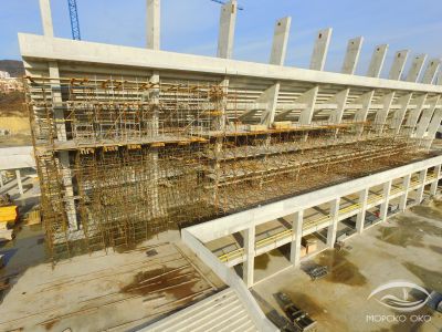 Снимки от птичи поглед на дрона „Морско око“ показват нагледно как се движи строежът на стадион „Варна“ и какво е свършено до момента, научи Moreto.net.
