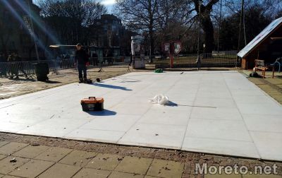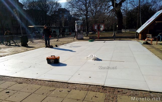 Демонтират ледената пързалка до Община Варна, видя репортер на Moreto.net.