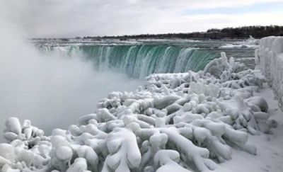 Части от Ниагарския водопад замръзнаха. Мразовитото време превърна прочутата забележителност в спираща дъха гледка от ледени фигури. В САЩ е в сила предупреждение за зимни бури за голям брой щати по източното крайбрежие с общо население от 100 милиона души. Температурите падат заради арктическа студена вълна, нахлуваща от Канада.