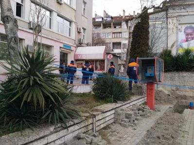 В началото работниците разкопали и изпочупили голяма част от тротоарните плочки на ъгъла на ул.“д-р Пискюлиев“ и бул „Хр. Ботев“.